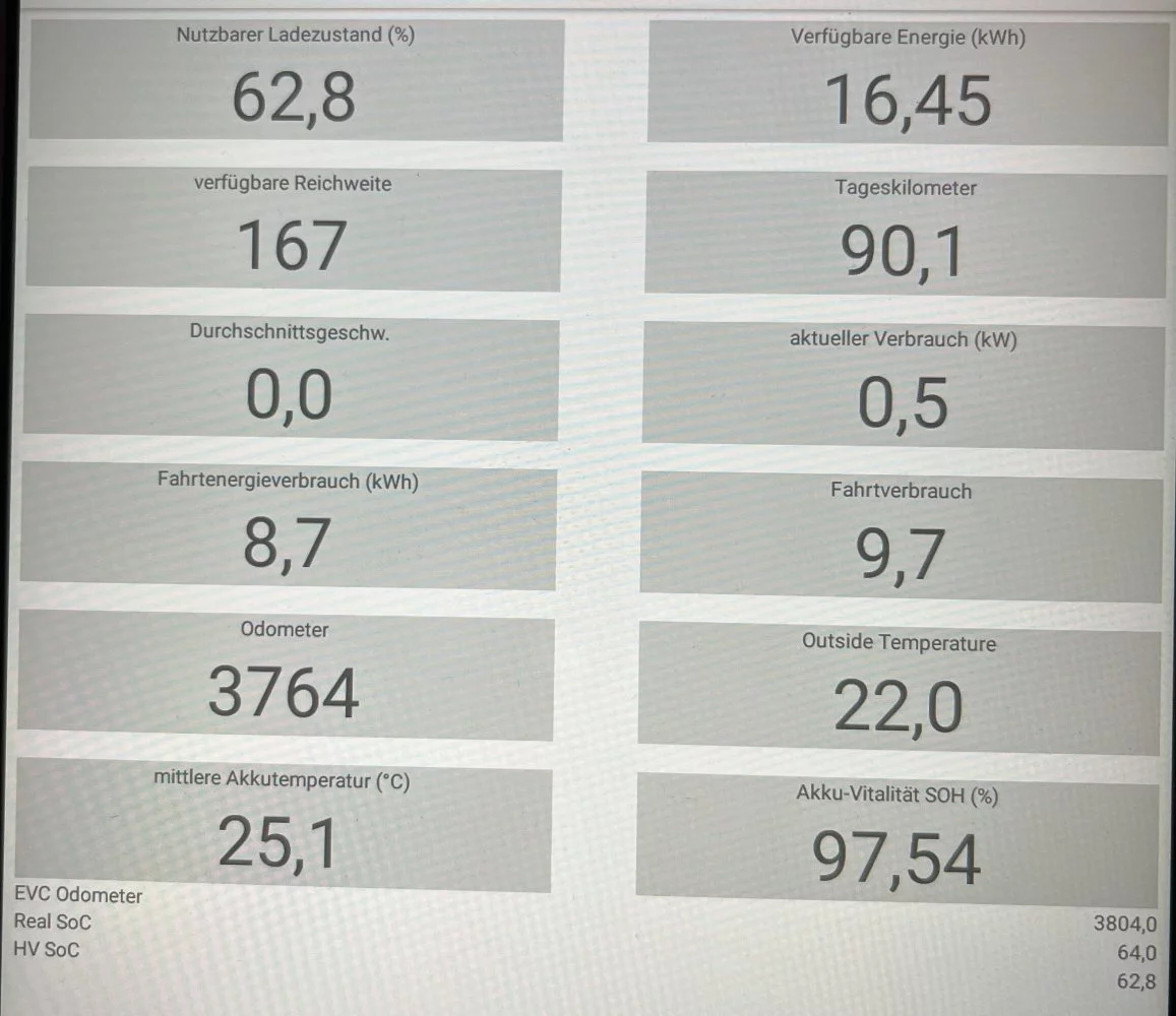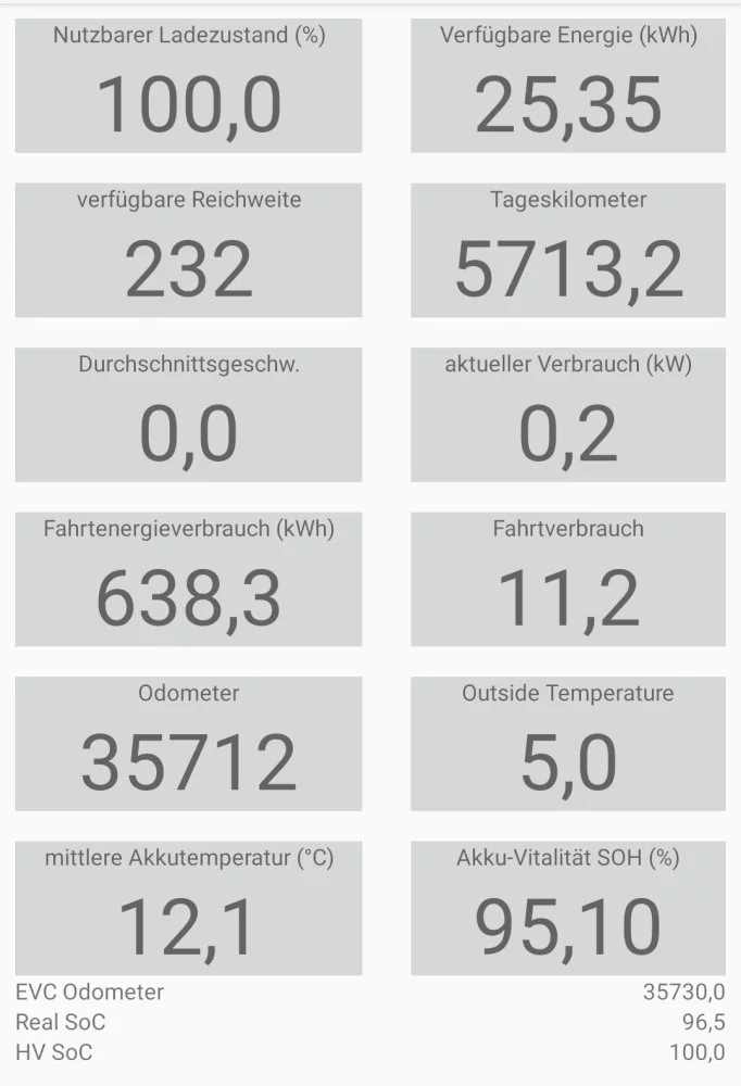 Interessant wäre mal was Ihr für Werte bei CanZE+ habt inkl. aktuellem SoH und SoC sowie km: