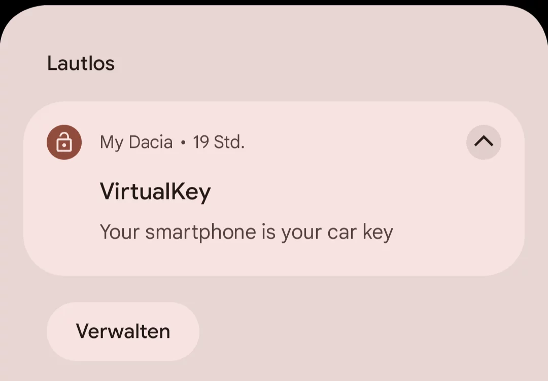 Seit einiger Zeit bekomme ich als Benachrichtigung folgende Meldung von der myDacia-App auf's Handtelefon:
