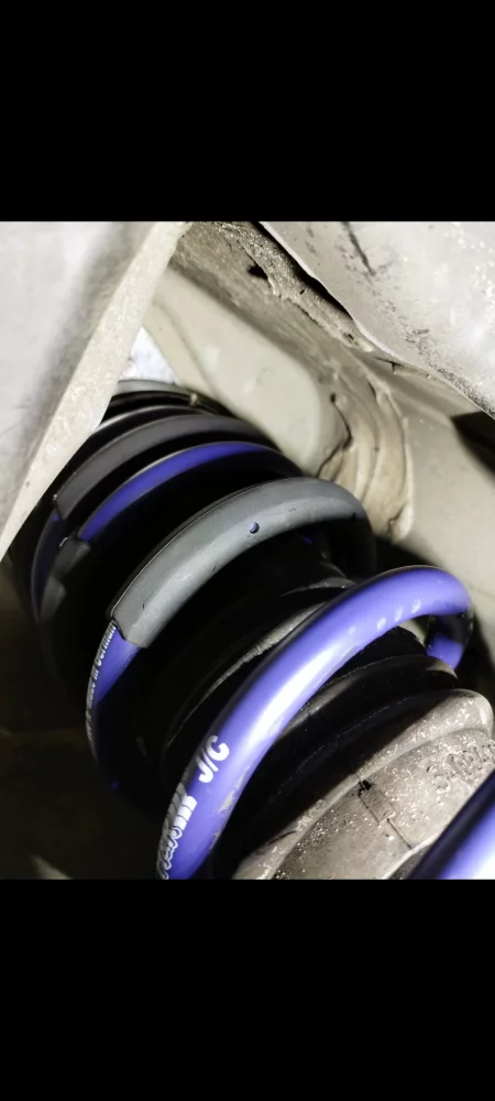 Wir hatten solche Federn immer vor der Montage mit einem durchsichtigen Schlauch umwickelt. Manche Hersteller machen das ab Werk.