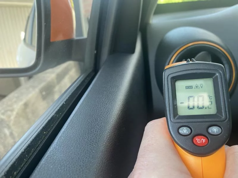 Heute morgen bei 15° Grad Aussentemperatur habe ich die Klimaanlage mit einem Infarot Thermometer getestet.