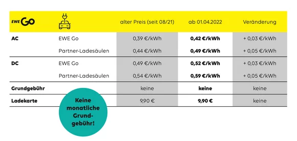 seit 2019 bieten wir unseren Kunden eine Ladekarte zu besonders günstigen Konditionen. Aufgrund stark gestiegener Energiebeschaffungspreise müssen wir nun aber unseren Tarif für die EWS-Ladekarte zum 01.04.2022 erhöhen und führen gleichzeitig eine monatliche Grundgebühr ein.