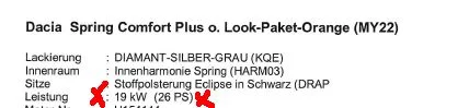 Über die 19kW bin ich auch schon gestolpert, im Felgengutachten der OxxO Felgen. 19kW ist die Dauerleistung, 33kW ist die <spitzenleistung, die max. 30 Minuten gefordert werden kann. Der Akku hat ca. 30 kWh (das haben Youtuber herausgefunden, die den Spring bis zum Stillstand leer gefahren haben).Von 27 PS weiß ich auch nichts, die 26 PS stehen auf meiner Rechnung, Ausschnitt siehe oben