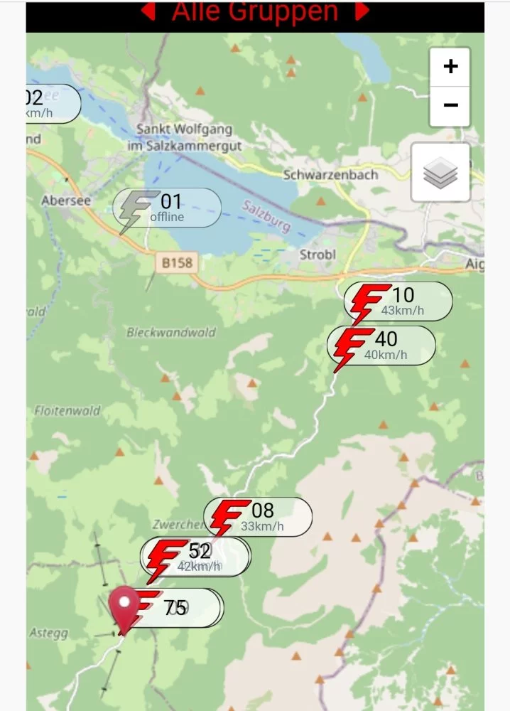 Team 10 - die Buchis nähern sich an der ersten richtigen Steigung zur Postalm, im Moment azf Platz 7
