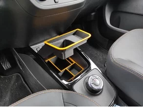Das Handyfach und der Getränkehalter sind nach vorne gewandert, zusätzlich habe ich noch Schlitze für 3 Münzen und 1 Stiftehalter hinzugefügt.