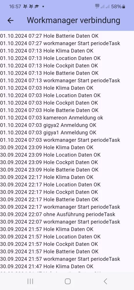 Die App hat willkürliche Aussetzer im Datenlog. Ich habe die Einstellungen geändert Programm aus bei neu init. und Logeinträge auf 999.