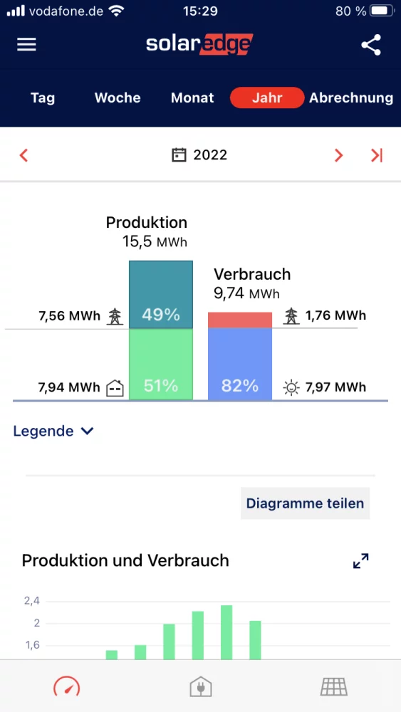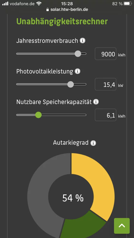 900-1000 kWh/pro Jahr pro 1 kWP installierter Leistung (bei mir rechnet man z.B. ca. 930) bei Südausrichtung sind ein brauchbarer Ansatz zum Überschlagen des Ertrages. Juni und Juli Überproduktion, Nov-Dez-Jan sehr wenig, weil die Tage kurz sind und die Sonne flach steht. Schon ein vergleichsweise kleiner Speicher erhöht den Eigenverbrauch und den Autarkiegrad erheblich.
