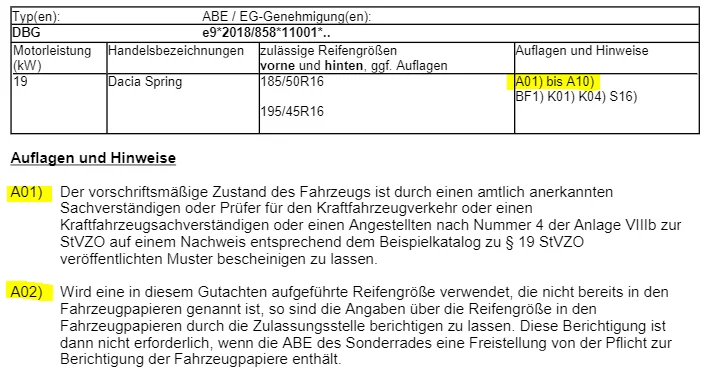 Da ich mir ja auch erst kürzlich Felgen gekauft habe, habe ich mir verschiedene ABEs etwas genauer angeschaut und da stand eben das hier drin: