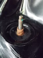 @Hans hat diesen Umstand erkannt: An dieser Stelle der Stoßdämferbefestigung darf keinerlei mechanische Schwingungen oder Stöße in das Radhaus/ Blech mehr übertragen werden! [ entkoppelt ] Wie bereits @Bender bemerkte, ist die blaue, konkav geformte lackierte Scheibe zur Gummilagerung/ Führung im Set (2x) konzipiert. Konkavscheibe ist eigentlich immer fest'