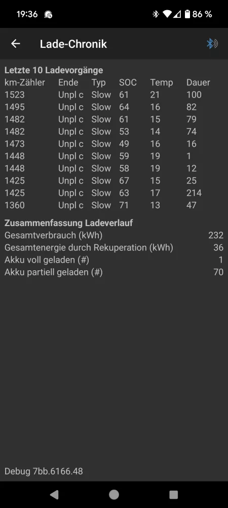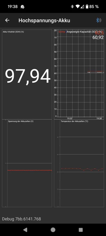 Wie ja schon oft geschrieben: diese SOH-Berechnung ist nicht mehr als eine Eieruhr.Schön langsam glaube ich das der SOH nach Zeit heruntergerechnet wird und die Km keine Auswirkung haben