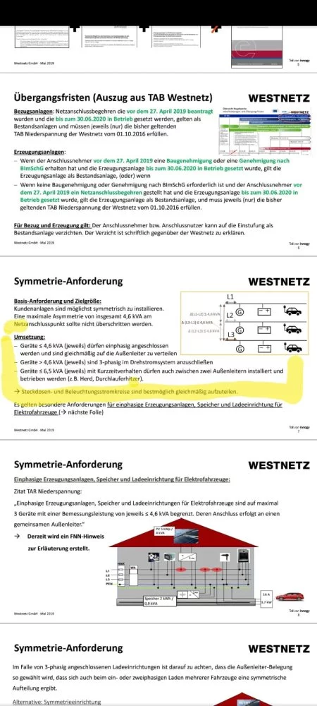 Folgender Gedanke: ist es denkbar das auf einer Phase Starkstrom entnommen wird? So würde aus +2300W schnell -3650W Entnahme werden, während auf einer anderen Phase 2300W + 4000W eingespeist werden, da wurde die Differenz 7650W betragen also Unsymmetrie vorliegen?