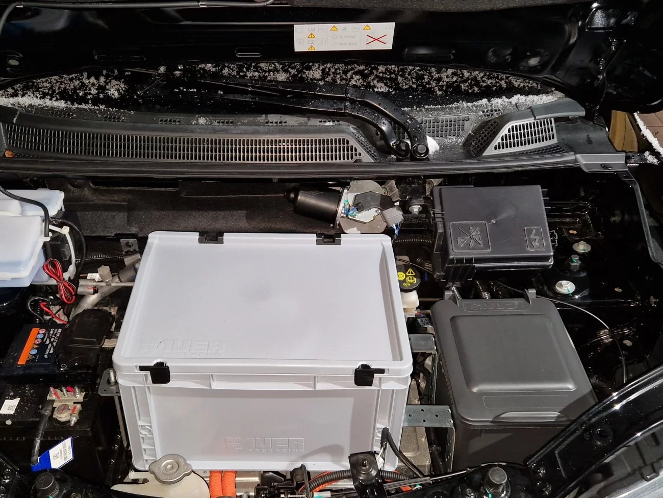 Habe gerade diesen Frunk entdeckt. Ich denke, da wird es wieder Diskussionen wegen der Lüftung/ Wärmeentwicklung geben, aber das ist die schönste Lösung....erinnert mich an unseren Smart Roadster, den wir mal hatten, da sah es vorne ähnlich aus