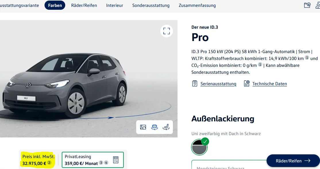 Die Karre ist über 3 Jahre alt. Der UVP eines nagelneuen ID.3 liegt bei 32.975,- €